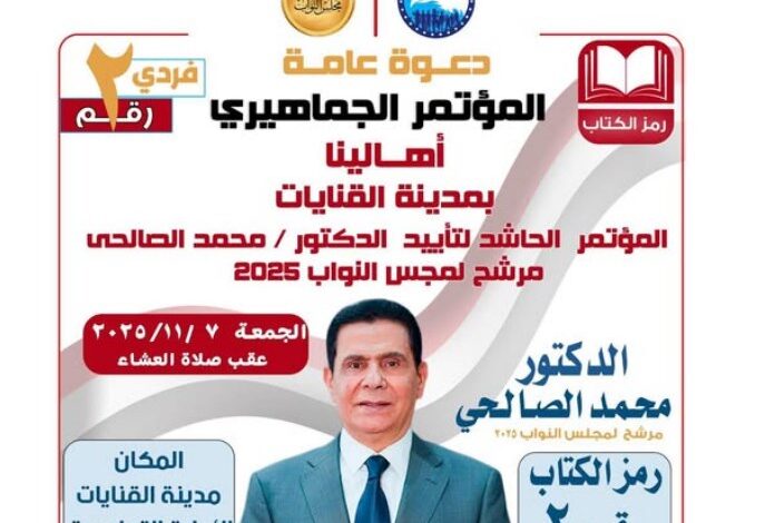الحدث الاكبر لحضور المؤتمر الجماهيري الكبير لدعم وتأييد الدكتور محمد الصالحي مؤتمر الوفاء والعطاء يجمع الأوفياء خلف فارس القنايات وأمير القلوب