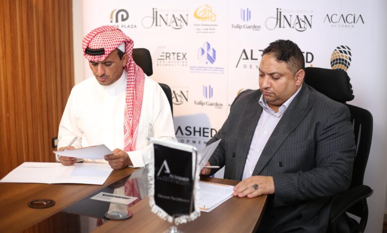 شهد مقر شركة الراشد للتطوير العقاري – إحدى الشركات الرائدة في مجال التطوير العقاري بغرب القاهرة – نجاح مراسم توقيع شراكة استراتيجية وطنية بين شركة الراشد للتطوير العقاري وسمو الشيخ جابر بن سعيد الحربي، مالك ورئيس مجلس إدارة منتجعات وفنادق فينسيا بمصر، لتنفيذ مشروع عقاري ضخم بمدينة الشيخ زايد الجديدة يحمل اسم JINAN، بإجمالي استثمارات تتجاوز ملياري جنيه مصري.